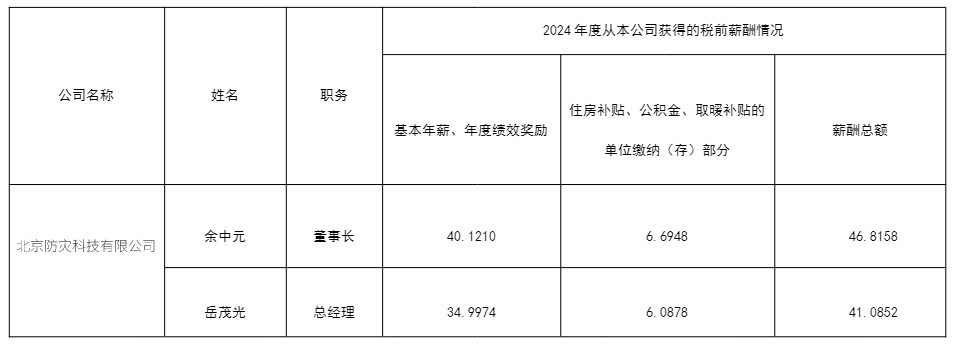 根据《中国地震局局属单位企业管理暂行办法》(中震财发〔2020〕105号)和《米兰app下载苹果手机版安装教程校属企业管理办法(修订)》(防科发资〔2022〕40号)文件要求,现将米兰app下载苹果手机版安装教程所监管企业2024年负责人薪酬信息披露如下: